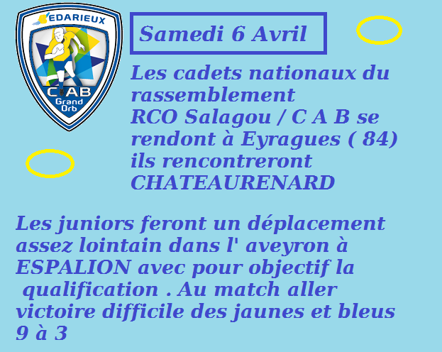 Juniors en aveyron ,cadets danS le vaucluse ...