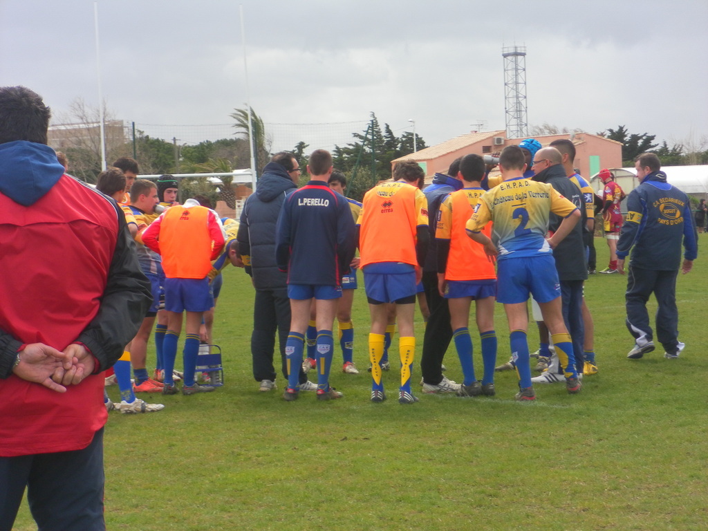 Deux petits points c'est ce qui a manqué aux cadets , batus 11 à 13 par l'entente Alaric/Trébes/Conques ,les garçons du regroupement ont été battus en finale du championnat " Territoriaux " du Languedoc . Des regrets quand même car cette victoire était à leur portée au terme d'un trés bon match . Pas du tout favoris ( nos jeunes ont été batus 2 fois en poule ) ,ils ont pourtant failli déjouer les pronostics . Bravo quand même aux joueurs , aux coachs et à l'équipe administrative pour cette brillante saison .