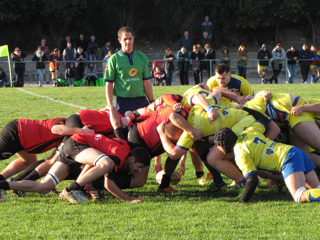 On savait que l'adversaire était à la portée des joueurs jaunes et bleus . Dés le début de la rencontre les joueurs du CAB Pays d'orb mette la pression au niveau des avants , mais les locaux défendent chérement leur peau . Un premier éssai pour les jaunes et bleus vient récompenser l'effort des "gros " .Il faut ; iajouter à cela 1 pénalité et les visiteurs du jour tournent à la mi-temps avec un score favorable de 10 à 3... A la reprise les joueurs des hauts cantons reprennent leur marche en avant et inscrivent un 2° essai non tranformé et une pénalité . On pense que le match est plié et qu'on se dirige tout doucement vers un bonus offensif avec un 3° essai ...Il n'en fut rien car les locaux ne voulant pas s'avouer vaincu ont marqué un bel essai et une pénalité .Le score est alors de 18 à 11.. Les jaunes et bleus malgré de vaines charges ne sont pas arrivés à cause de maladresses ou de mauvais choix à faire sauter le verrou défensif des locaux ..Le score ne changera pas jusqu'a la fin de la partie .Il faudra élever le niveau de jeu pour espérer un bon resultat à domicile dimanche prochain contre Sigean Port la Novelle ...
