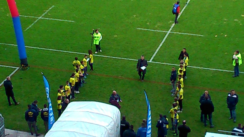 Les moins de 12 ans ont profité de leur repos pour assister au derby ASBH / USAP : ils ont pu faire la haie d'honneur aux jouerus pro !!! (photo ).