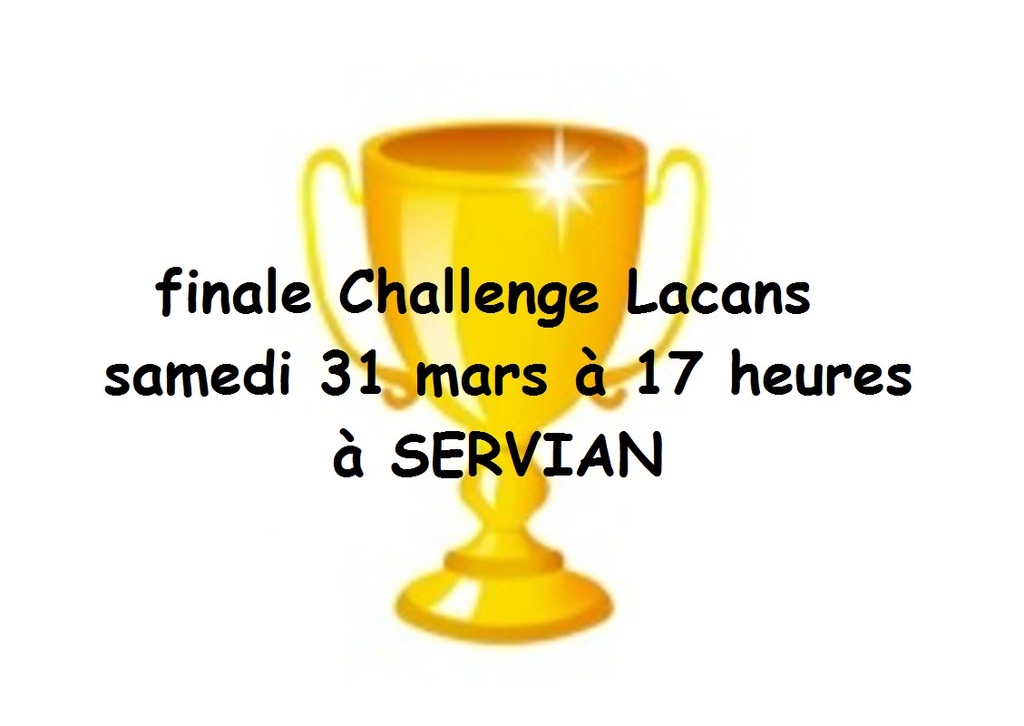 Samedi 31 mars , les équipiers 1 des jaunes et bleus se rendront à Servian ( 17hs ) pour y rencontrer les Rives d'Orb en Finale du Challenge Pierre Lacans .Pour en arriver là , les garçons de grand orb avaient éliminé en quart de finale Névian / Canet et en demi finale Couiza / Espéraza .En championnat contre les Rives d'Orb les jaunes et bleus avaient été battus d'un tout petit point au match aller ,mais l'avaient emporté un peu plus largement au match retour malgé un relachement en fin de match .Cette rencontre sera la belle et les jaunes et bleus devront jouer avec serieux et application pour éviter de se faire surprendre . Une victoire du CAB Grand Orb Rugby , serait la bienvennue avant le match de barrage en championnat la semaine prochaine .