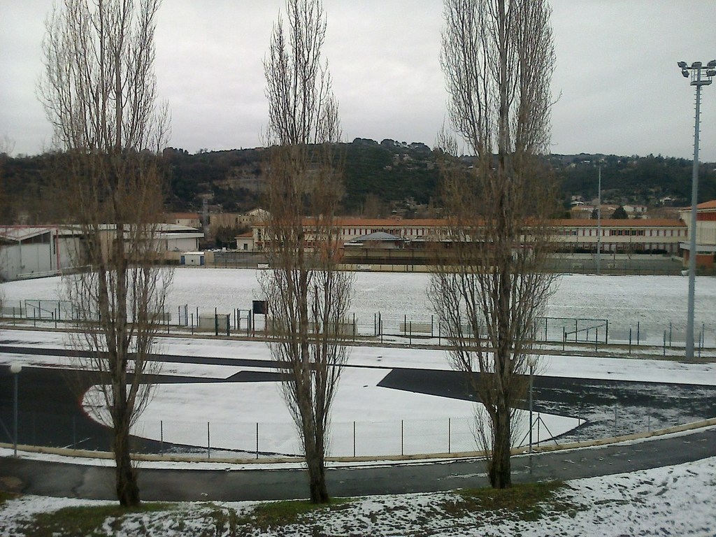 Le terrain de Bédarieux étant impraticable à cause de la neige de ces derniers jours la rencontre contre Poussan est remise à une date ultérieure non connue à ce jour ....! ( photo le stade rené char )