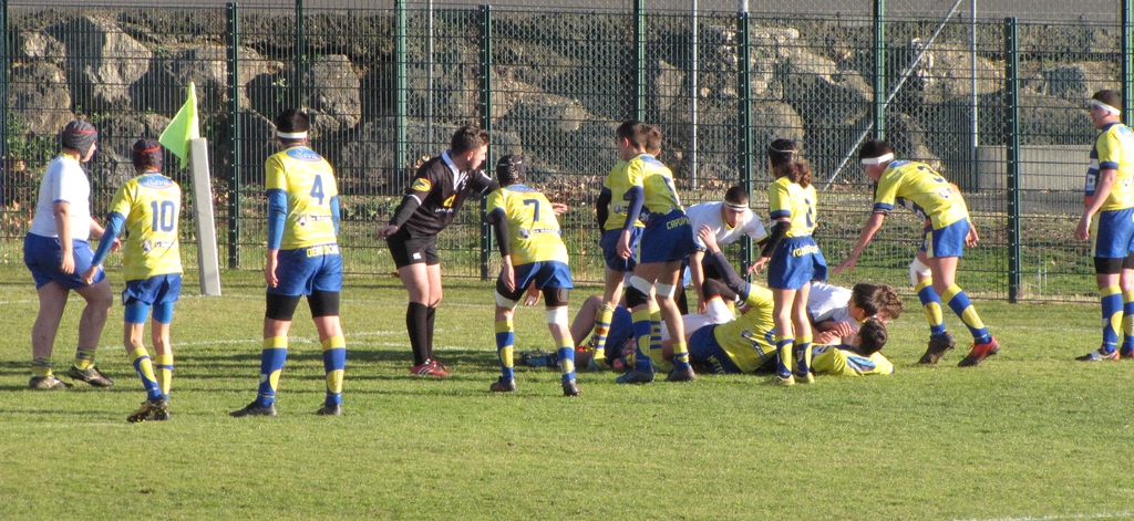 Les cadets à René Char ont été battus 34 à 12 par Salagou . Les jaunes et bleus sont restés longtemps dans la partie ,mais des fautes de défenses ont fait le jeu de l'adversaire ..c'est dommage car cette équipe a de bonnes intentions . Les juniors en déplacement à Villeneuve les Béziers contre l'entente Cheminots/Maureilhan/Villeneuve ont été battus de justesse 15 à 13 au terme d'une rencontre qu'ils ont bien conduite , et qu'ils auraient pu remporter .Cette équipe est sur trés bonne dynamique ..il ne manque plus grand chose , pour confirmer les trés bonnes intentions ..( photos les cadets )