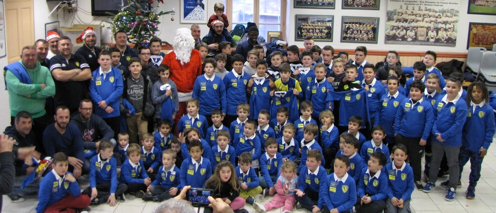Grosse animation cet aprés midi à la salle du club avec le gouter de Noël de l'école de rugby . Dans un premier temps pour les plus jeunes une belle partie de loto avec beaucoup de choses à gagner et en particulier un superbe drône .A 16 heures les plus grands sont de retour de l'entrainement et peu de temps aprés , il y a l'arrivée d'un superbe père Noël qui avait la hotte rempli d'un tas de magnifiques polos aux couleurs et écusson du club . A noter qu'il y avait trés peu d'absents ....Les enfants sont venus chercher leur cadeau auprés du père Noël , certains intimidés et d'autres beaucoup plus hardis .En suite il y a eu un gouter pour les jeunes joueurs et les adultes présents ...Gateaux , biscuits , friandises , boissons rien ne manquait pour le plaisir des jeunes joueurs . Les mamans avaient mis le " paquet " pour garnir le buffet.. et en prime un superbe gateau aux couleurs du club !Les educateurs et les parents présents ont partagé douceurs et verres de l'amitié . Ensuite il y a eu le tirage de la tombola ..! Cet aprés midi c'est terminè fort tard , et rendez vous est pris pour la reprise des entrainements le 10 janvier ...2018 !