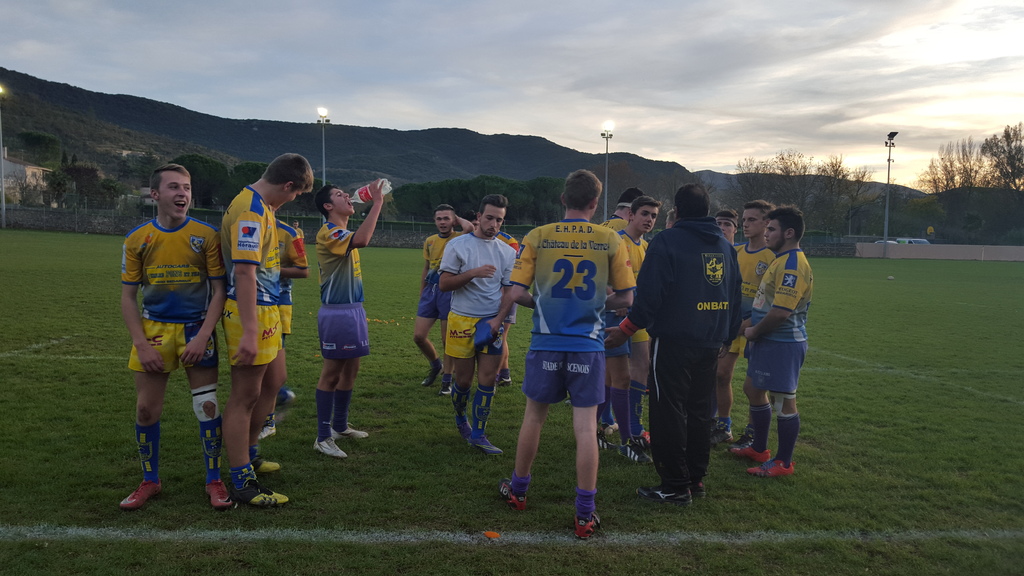 Les juniors 1 pour leur deuxiéme déplacement ( en 2 matchs ) se sont inclinés 10 à 12 contre l'entente Fleury.Salles.Coursan ;Les cadets et les juniors 2 étaient aussi en lice cet aprés midi à René Char face à Leucate . Nos garçons se sont trés bien comportés puisque les 2 équipes ont gagné leur match . Les cadets 35 à 7 et les juniors 20 à 15 ....