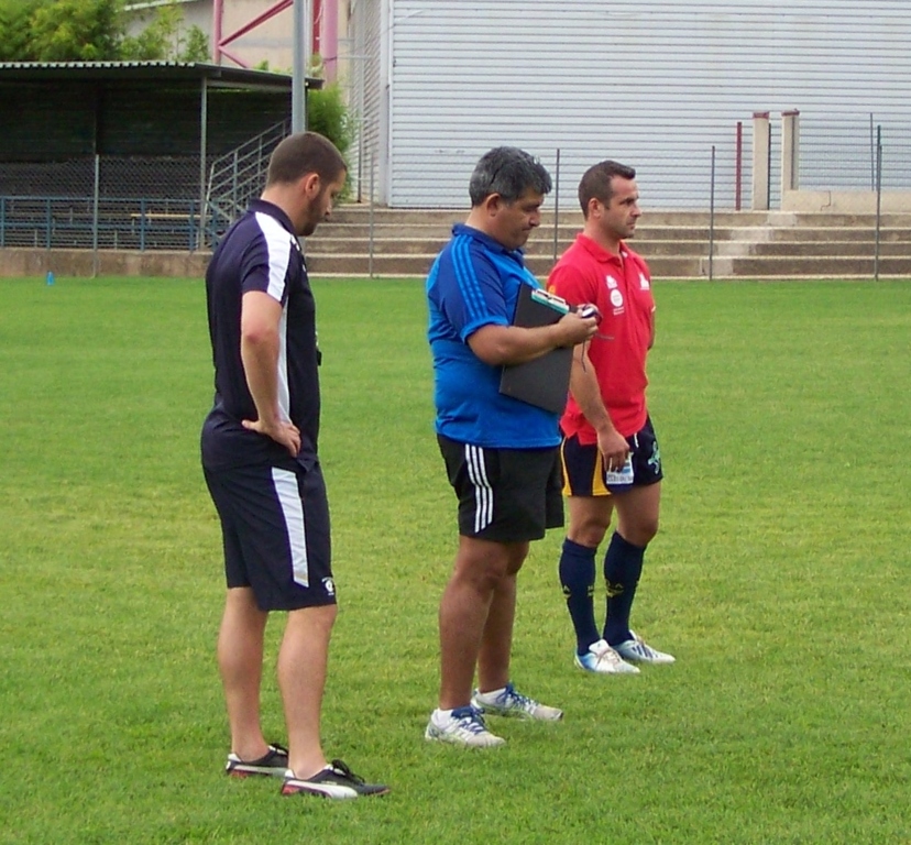 Le dimanche 7 septembre le CAB Pays d'orb se déplacera a Mauguio pour y rencontrer l'équipe locale en coupe du Languedoc pour le premier match de la saison . Mauguio évolue en 1° série et avait fait un trés bon début de saison l'an dernier . Les melgoriens ont repris l'entrainement des début Aout . Une rencontre trés importante pour les jaunes et bleus . photo : les coachs et le préparateur physique donnant les consignes lors du premier entrainement du CAB Pays d'orb .