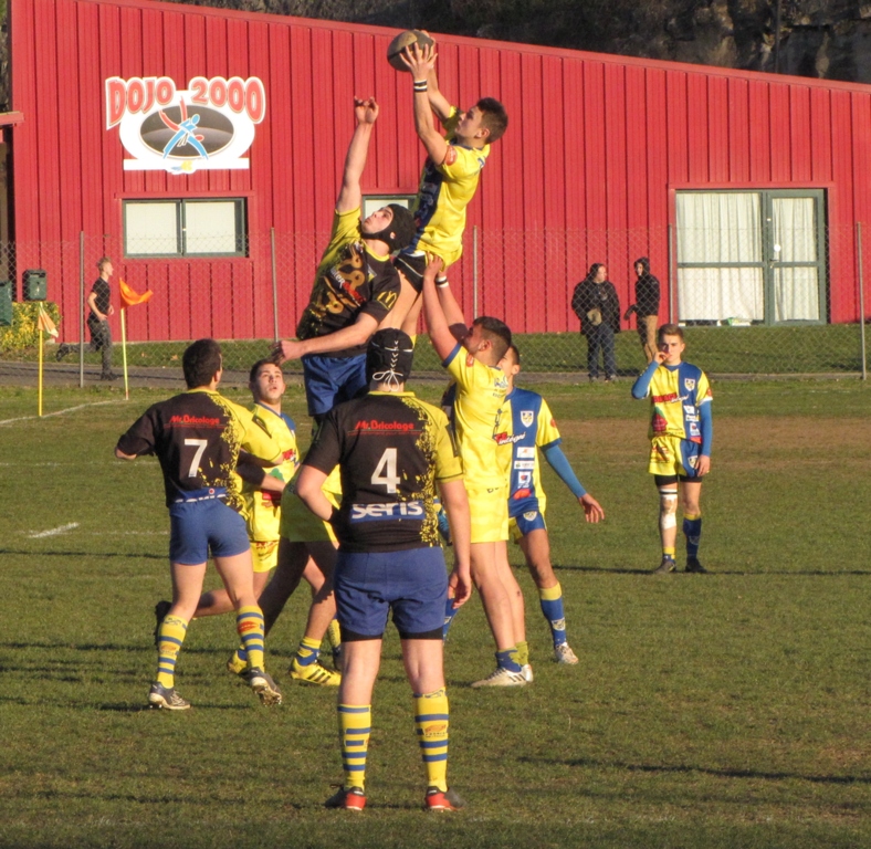 Les cadets se sont imposés 27 à 13 au terme d'un match ou la victoire des jaunes et bleus s'est nettement dessinnée dans les 10 derniéres minutes avec 2 trés beaux essais .Pour les juniors qui ont gagné 27 à 0 avec un bonus offensif . Pourtant ce n'est pas leur meilleure prestation et cela est peut être du a cette longue coupure . .