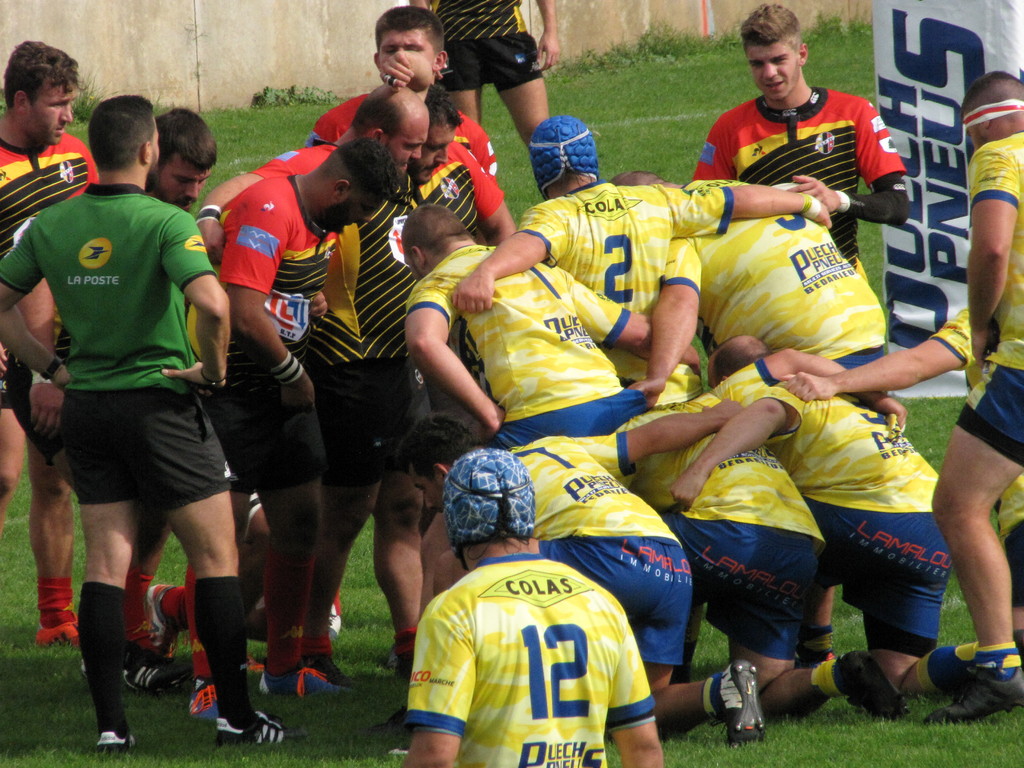 Bel aprés midi à René Char ou les 2 équipes seniors jaunes et bleus sont sorties vainqueurs de leur duel avec Sigean Port La Nouvelle . L'équipe 2 s'est imposée 28 à 19 et l'équipe 1 aprés un match stressant s'est finalement imposée 20 à 16 ...