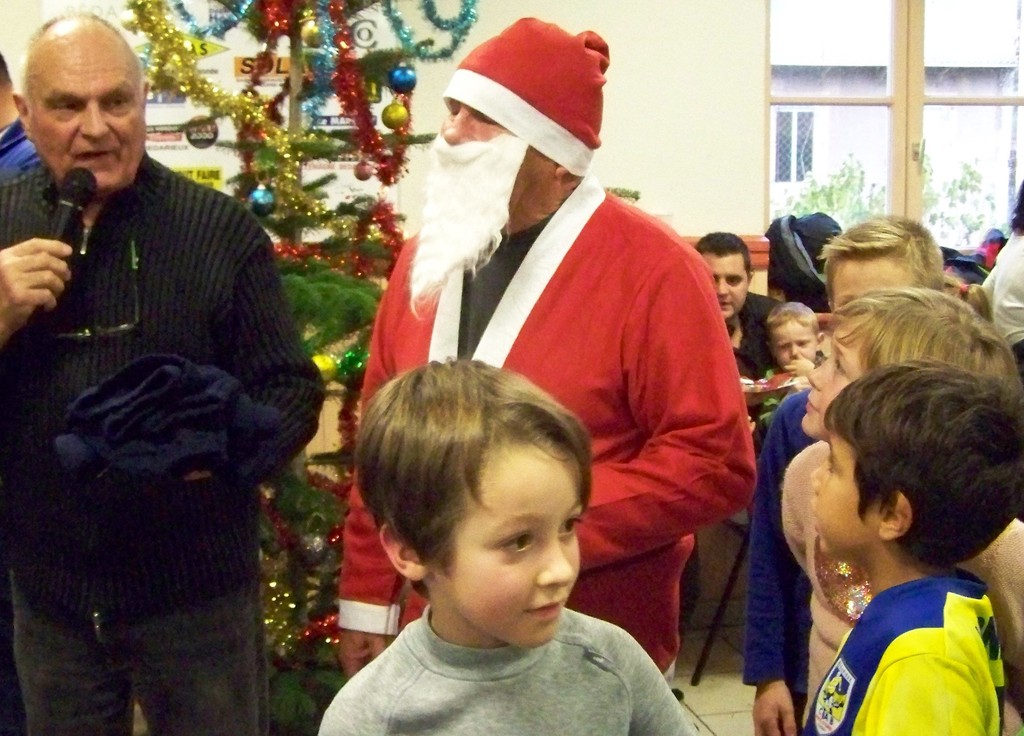 Les responsables de l'école de rugby ont fait cela trés bien , une bonne organisation et beaucoup , beaucoup d'enfants présents.... ! Tout a débuté par une partie de Loto pour les " petits " , moins de 6,8,10 ans .Ambiance comme les grands , des quines ,de jolis lots , de quoi faire plaisir aux enfants et à leurs parents . Ensuite aprés l'arrivée des moins de 12 ans et des moins de 14 ans , qui avaient entrainement , on a eu droit a "l'aterrissage" du Pére Noel et des cris de joie chez les tout petits .Jacki Canto en maître de cérémonie a appelé tous les jeunes rugbymen un par un pour la distribution de bas de jogging ( qui vient completer le sweat de l'an dernier ) par le pére Noel et les éducateurs de chaque section . Les sponsors qui ont offert ces bas de jogging étaient présents et ont été chaleureusement remerciés .Ensuite on est passé au gouter . Quel gouter ! Les mamans avaient répondu present et il y avait de quoi nourrir " un régiment " . Boissons et chocolats ont circulé abondament . Les éducateurs n'ont pas été oubliés , un pantalon pour eux aussi et les dirigeants , Greg Lassaux en tête ont offert le pot de l'amitié à toutes les personnes présentes .Le Président du CAB Pays d'orb , Stéphane Pons était présent à cette sympathique reception .Cette manifestation a démontré la vitalité de l' école de rugby et de leurs dévoués édcateurs !