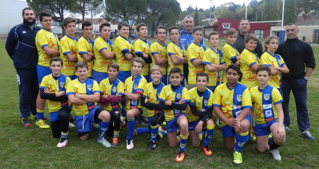 les moins de 12 ans débrouillés à Pézenas ont connu 2 victoires et 1 défaite , les moins de 12 ans confirmés a Béziers eux aussi , 2 victoires et 1 défaite . Les moins de 14 ans à dimicile à René Char , 1 victoire 32 à 0 contre St Jean de védas et 1 défaite contre Jacou 12 à 19...Le week end prochain c'est les vacances ..! photo les moins de 14 ans )