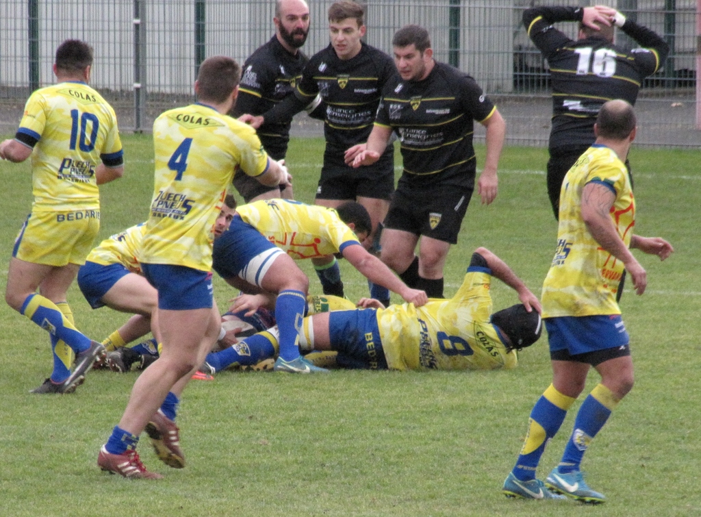 Pour le dernier match de 2017 , le public a quitté René Char , ravi .. Belle démonstration des jaunes et bleus qui malgré les suspendus et lesblessures ont pu aligner une équipe a fiére allure .. Les jaunes et bleus ont marqué 9 essais et terminent 2017 sur une victoire bonifiée en cela aidé par une vaillante équipe de Villeneuve qui n'a jamais fermé le jeu, voilà de quoi passer Noel au chaud .Le score de 63 à 12 avec 9 essais à la clé refléte bien la domination sans partage des locaux qui voulaient terminer cette année 2017 sur une bonne impression ...Ce fut fait et de fort belle maniére !