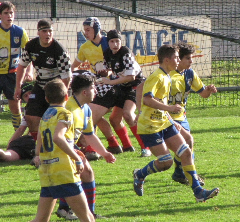 Infos jeunes : L'école de rugby met son calendrier à jour suite aux intempéries de samedi dernier . Les moins de 14ans iront samedi matin à Trébes ( 11 ) défier Carcassonne et les moins de 8 ans et moins de 10 ans se déplaceront à Beziers , stade de la présidente samedi aprés midi . Les cadets joueront à René Char , samedi à 14hs en recevant Bagnols sur céze .Les cadets jaunes et bleus font un beau parcours , ils occupent la 2° place de la poule .