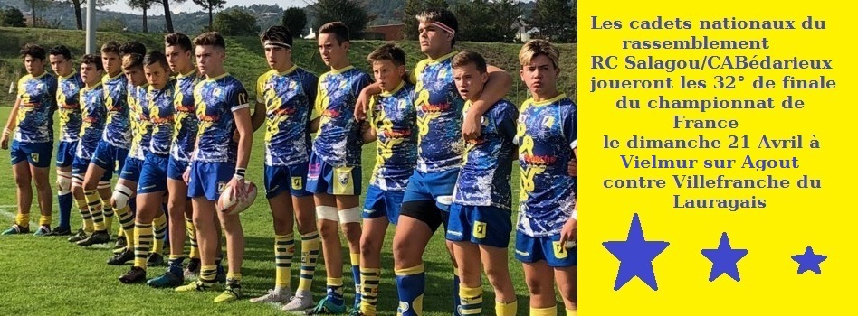 ça y est c'est tombé les cadets nationaux jaunes et bleus feront le déplacement à Vielmur sur Agout pour y rencontrer Villefranche du Lauragais le dimanche 20 avril ....