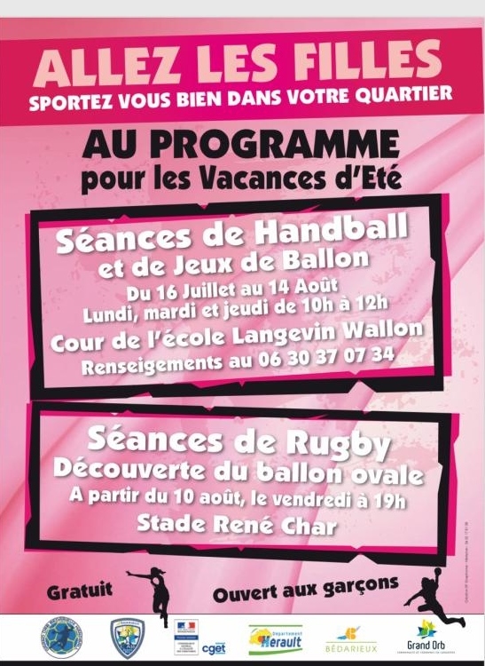 Dans le cedre de l'action " allez les filles sportez vous bien dans votre quartier " le CAB Rugby Grand Orb organises des journées découvertes tous les vendredis a partir du 10 aout à 19 hs au stade René Char ....
