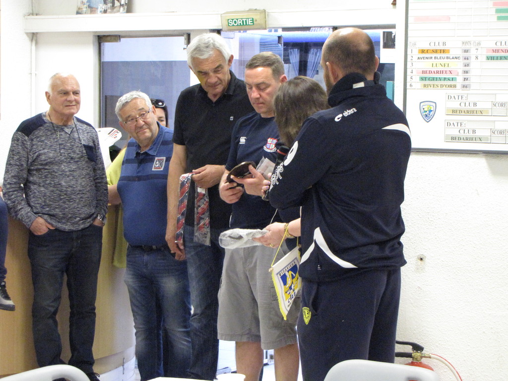 ympathique manifestation lundi en fin d'aprés midi au siége du club avec la réception du club Irlandais le RFC Coolmine . Ce club est venu avec ses jeunes de moins de 14 ans participer au Tournoi Palmade du 8 Mai .C'est en relation avec Gamel Taieb ancien joueur du CAB et dirigeant actuel de ce club irlandais que ce rapprochement a pu s'effectuer . Au cours de cette manifestation trés conviviale il y a eu échange de cadeaux et partage d'un repas en présence de jacques Bénazech et de Grégory Lassaux .Le fils de Gamel , Matthieu sera opposé à ses anciens partenaires du CAB.