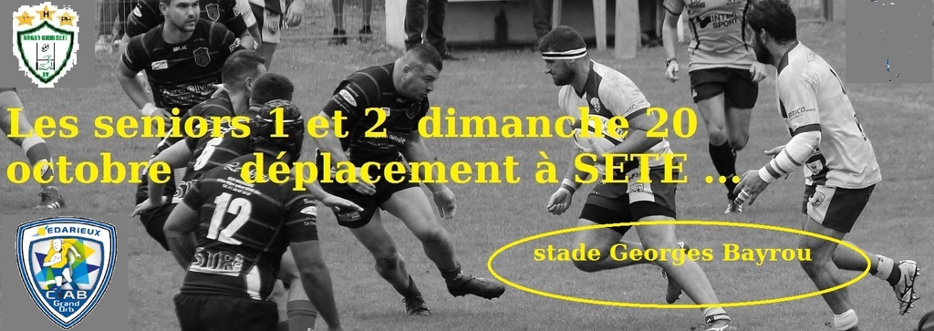 Les deux équipes seniors jaunes et bleus se déplaceront sur le bord de la mer à Séte . Les maritimes du RC Séte occupent la premiére place de la poule avec Alés, mais reste sur une petite défaite dimanche dernier à Vinassan . Ce déplacement à Séte pour les jaunes et bleus ne sera une promenade de santé , et ils devront s'employer a fond pour ramener des points lors de cette rencontre .