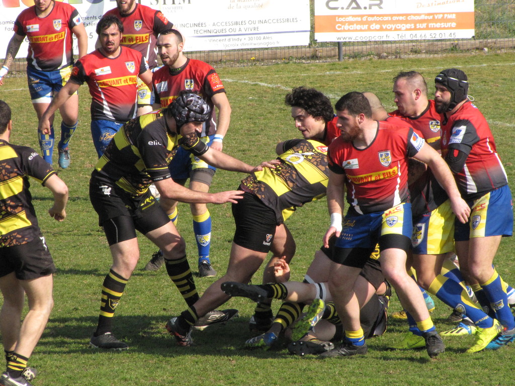 L'équipe 2 a effectué un bon match mais à cause de précipitations et de maladresses n'a pas pu faire sauter le verrou des Lunellois et a été battu 15 à 20 . L'équipe 1 aprés un début de match compliqué , a fait le dos rond et aprés 20 minutes a prés les choses en main pour virer en tête 6 à 3 ...En seconde mi temps les jaunes et bleus ( en rouge sur ce match ) accentue leur avance 9 à 3 . Lunel par une pénalité revient à 3 points . A la 80° minutes les jaunes et bleus sont toujours devant , 81,82;83,84 , 85, 86, et enfin à la 87° , les locaux bénéficient d'une pénalité bien placé .... Score final 9 à 9 ...Rageant et Ralant !