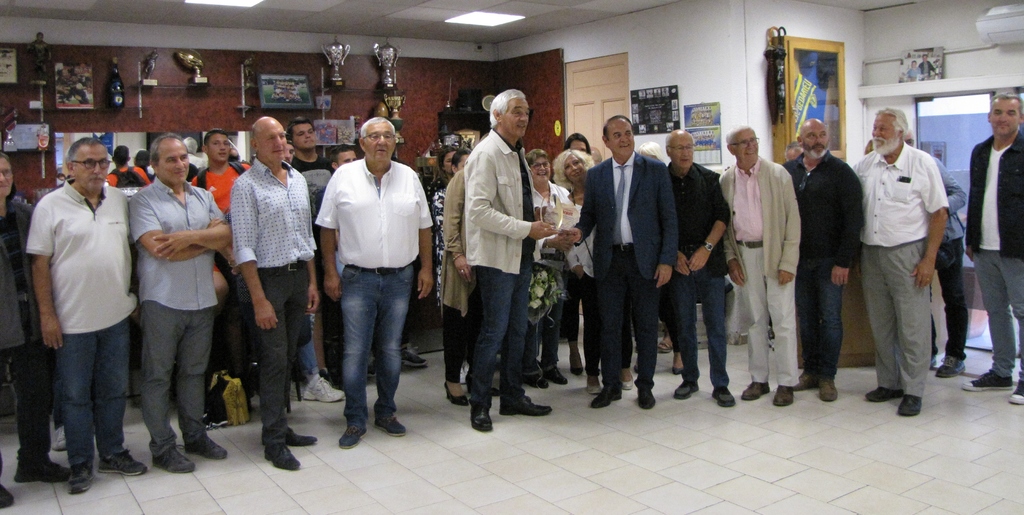 Sympathique réunion de famille ce jour au club housse du CABédarieux Grand Orb . En effet les 2 co présidents actuels Jacques Bosque et Laurent Puech ont tenu à manfester leur reconnaissance et celle de tous le club à Jacques Bénazech qui a cessé ses fonctions de présidents au mois de juin.A cette manifestation etaient présents Antoine Martinez Maire et président de grand orb ,Kleber Mesquida président départemental et Yves Robin , vice président grand orb en charge du sport .Parmi les présents ont noté la présence des dirigeants ,de joueurs et d'anciens joueurs .Les co présidents et Kleber Mesquida remirent tour a tour un objet souvenir pour rappeler à Jacques les 60 ans de présence au club dont 30 en tant que président .....