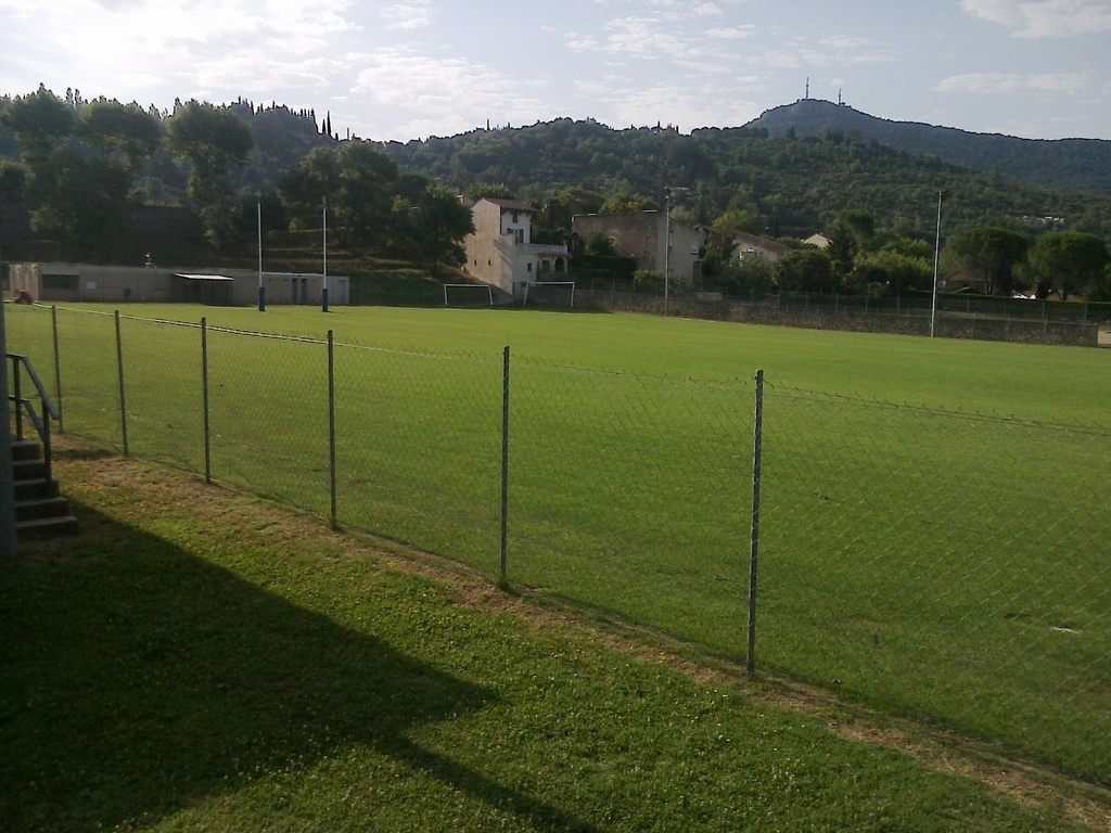La pelouse de ce terrain avait beaucoup souffert du piétinement intense ( entrainement , scolaire ) lors de la saison écoulée . Les jardiniers en charge du complexe sportif on fait du bon boulot et désormais un beau gazon recouvre le terrain N° 2 ....