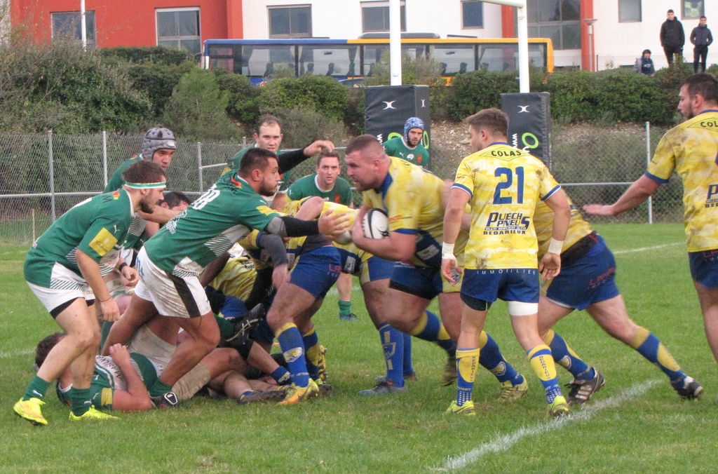 L'équipe 2 avait bien commencé sa rencontre en menant rapidement 21 à 0... en cours de match des blessures ont affaibli l'équipe qui petit à petit s'est faite remeontée pour perdre sur le fil 24 à 26 ..Dommage ! L 'équipe 1 si elle voulait conserver ses chances dans cette poule était dans l'obligation d'un bon résultat ....mais l'adversaire du jour était dans le même contexte .. D'ou un match trés serré ! Les jaunes et bleus ont joué bien collectivement en défense et en gardant 1 petit point d'advnce ont enfoncé le clou en fin de rencontre avec un bel essai collectif ..pour s'imposer 16 à 8 !