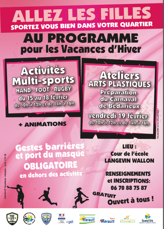 Dans le cadre du projet du contrat de ville « Allez les filles, sportez-vous bien dans votre quartier ! » sur le quartier prioritaire de Bédarieux, nous proposons :