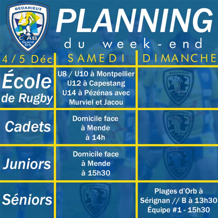 Planning rugbystique chargé !