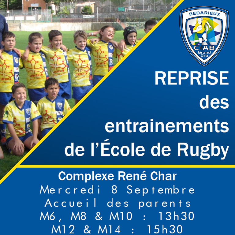 Reprise des entrainements le 8 septembre pour l'École de Rugby.